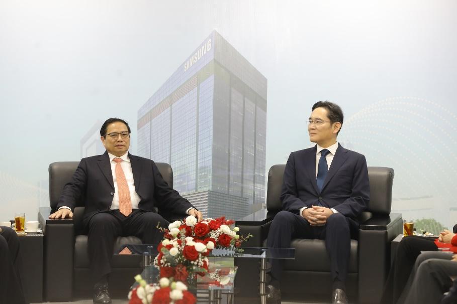 越南總理范明政與三星總裁李在鎔,關於研發中心進行會談 圖源:danviet.vn