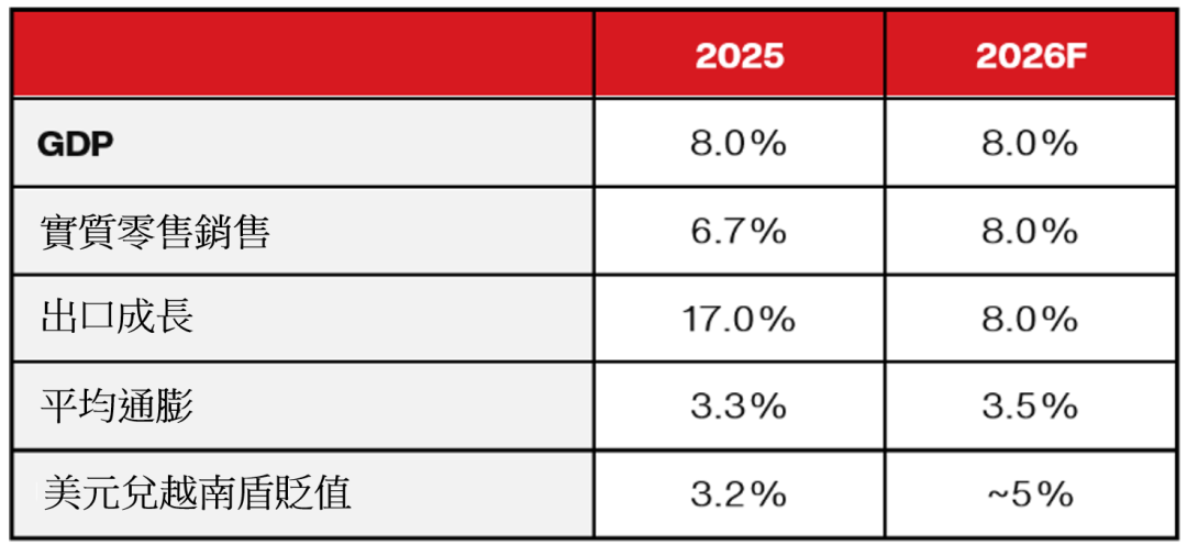 2025 年,越南经济和股市都交出了一份相当亮眼的成绩单:GDP 增长约 8%,VN-Index 以美元计上涨 37%。进入 2026 年后,越南更可能进入一个“增长再平衡”的阶段——增长动力不再只靠出口拉动,而是逐步转向消费修复、基础设施投资、房地产供给释放和结构性改革共同发力。