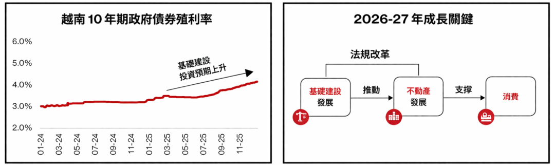 在供给短缺推动下,2025 年越南房价已经上涨超过 30%,自 2023 年以来累计涨幅更是超过 50%。但更合理的推演是,2026 年房价未必继续大幅上冲,原因是新项目逐步入市、基数已经抬高,且利率上升会对投机需求形成一定抑制。