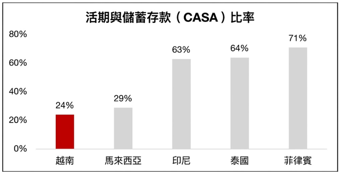对新兴市场来说,越南的信贷密集度偏高,也就是说,经济增长需要较多信贷来支撑。2025 年信贷增长约 19%,GDP 增长约 8%,这说明增长对资金依赖仍然很强。