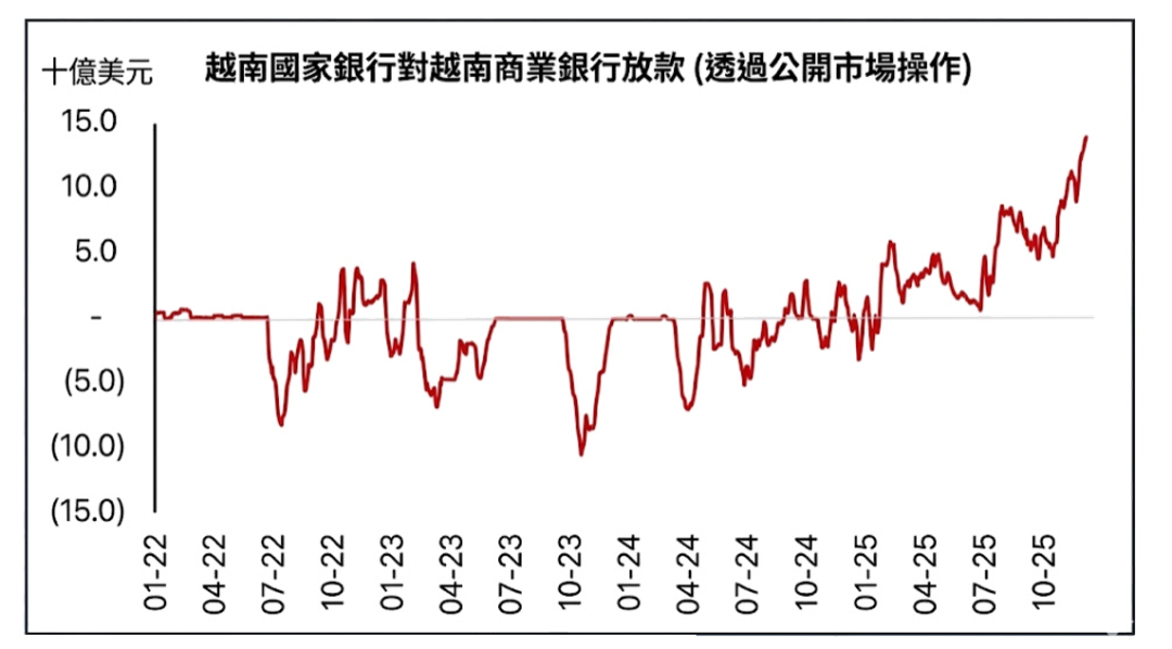 2025 年,12 个月期存款利率已上升约 100 个基点。预计 2026 年利率可能再抬升 50-100 个基点,接近 7%,背后主要有两股力量:一是银行体系流动性偏紧,二是越南盾面临贬值压力。